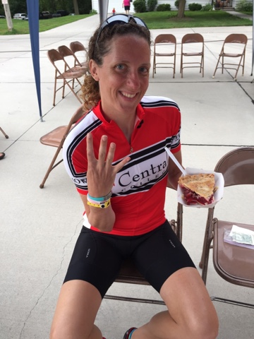 We continued to use the draft and tailwinds to our advantage and decided that in the next town we would stop and search for some pie. We saw some members of team cow on a tandem fat wheel bike and they were moving....it was impressive! They play great music so we tried to stay with them for as long as we could, but they stopped at the craft beer tent, so we lost our tunes. We were starting to see a pattern here...we lose tunes and draft lines for beer! It had been pretty overcast and cool up to this point, but the sun was starting to come out and we could tell it was going to get toasty. As we approached Wilton, we started seeing signs for the petting zoo sponsored by the FFA. I challenged Stacey to pet a cow since she chickened out last year. I mean it's just a cow...they are harmless! Especially some little FFA members cow! We got to the petting zoo and they had sheep, goats, dairy cows, chickens, and piglets. Stacey petted a sheep right away...and seemed to be shocked at how soft it was.