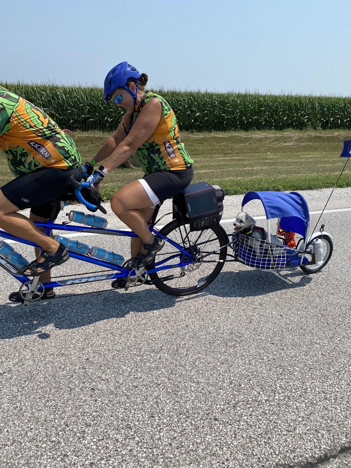 While riding I saw this couple pulling a small trailer. Way too small for a child, and low and behold it was Chewy the dog! He was just loving life and every now and then he’d bark a little. That happened to coincide with when they were going slower to talk to me! Basically Chewy was telling his parents to pedal faster!!
